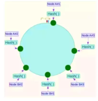 针对这一问题,可以引入虚拟节点解决。简单地说,就是为每一个服务器节点计算多个 Hash,每个计算结果位置都放置一个此服务器节点,称为虚拟节点,可以在服务器 IP 或者主机名后放置一个编号实现。
