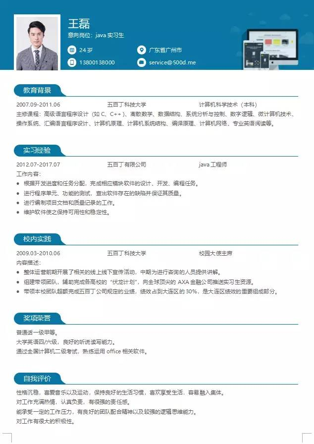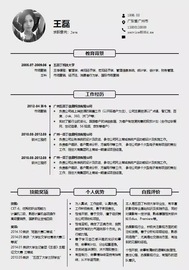 关注微信公众号「Java中文社群」,发送「简历」领取更多简历模板。