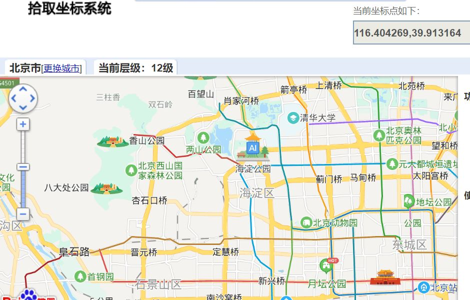 首先我们可以使用百度提供的经纬度查询工具来确定位置信息,地址:我们先用百度地图提供的经纬度查询工具,地址:http://api.map.baidu.com/lbsapi/getpoint/index.html