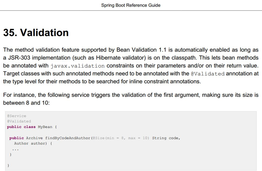 1、Spring Boot文档中的Validation