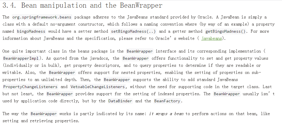 顺便提一句,这里BeanWrapper去取对象的属性值,我们稍微看一下BeanWrapper是做什么的