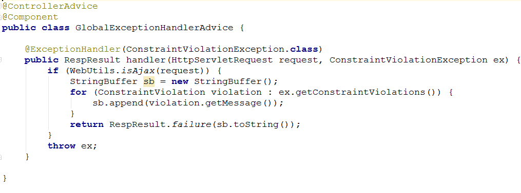默认情况下,如果校验失败会抛javax.validation.ConstraintViolationException异常,可以用统一异常处理去对这些异常做处理