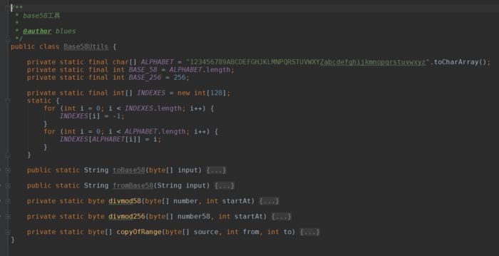 base58和base64一样是一种二进制转可视字符串的算法,主要用来转换大整数值。区别是,转换出来的字符串,去除了几个看起来会产生歧义的字符,如 0 (零), O (大写字母O), I (大写的字母i) and l (小写的字母L) ,和几个影响双击选择的字符,如/, +。结果字符集正好58个字符(包括9个数字,24个大写字母,25个小写字母)。不同的应用实现中,base58 最后查询的字母表可能不同,所以没有具体的标准。
