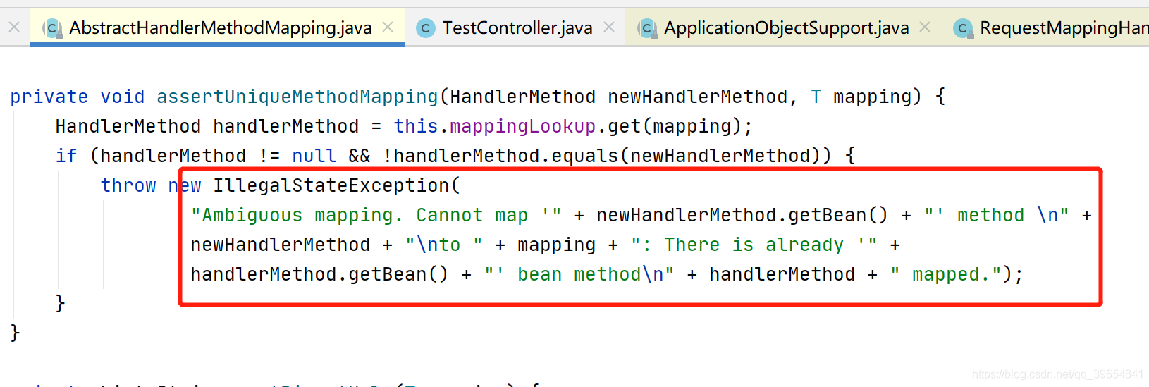 通过查询报错信息找到了报错所在类的方法:org.springframework.web.servlet.handler.AbstractHandlerMethodMapping.MappingRegistry#assertUniqueMethodMapping