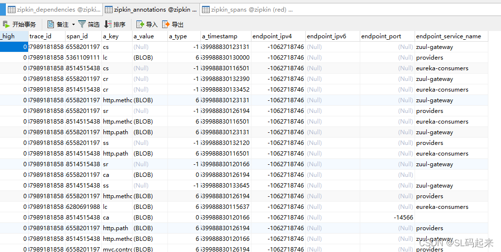 - ss:Server Sent。在请求处理完成时进行注释(当响应被发送回客户端时)。sr从这个时间戳中减去时间戳就显示了服务器端处理请求所需的时间。