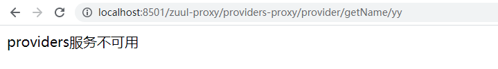 停止服务提供者,访问http://localhost:8501/zuul-proxy/providers-proxy/provider/getName/yy,出现下面结果,降级处理成功