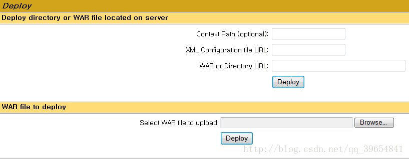 登录成功后在最下面会有个deploy按钮,先选择之前已经准备好的war包,点击deploy就会部署到tomcat服务器端,