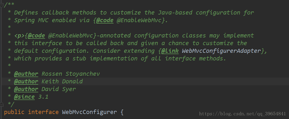 其实现的接口WebMvcConfigurer 定义了一些回调方法为springmvc提供一个通道通过java基本的配置。