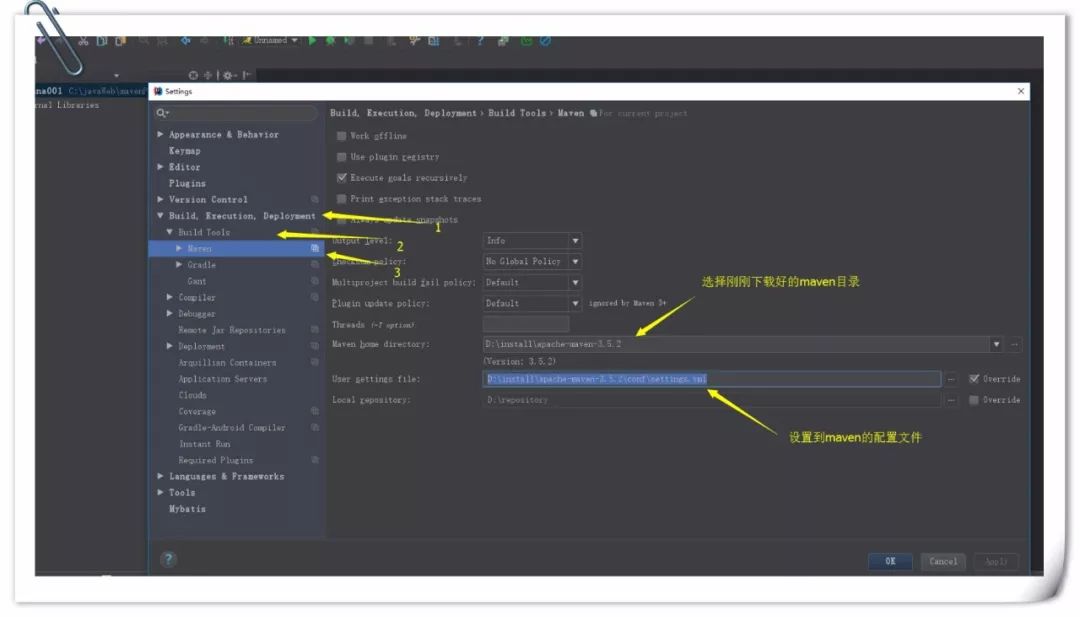 mirror>打开idea=》file=》settings,然后在搜索框中输入maven,然后选择好广告解压好的maven目录以及maven的setting.xml路径,如下图配置