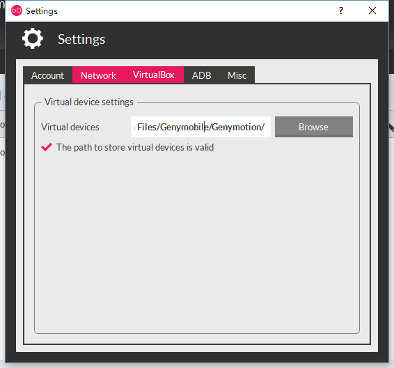 之前是自定义了一个目录,以为任意一个地方存放部署的虚机就可以,谁知道不行,按照大拿们的提示,修改成genymotion的安装目录(E:/Program Files/Genymobile/Genymotion/)