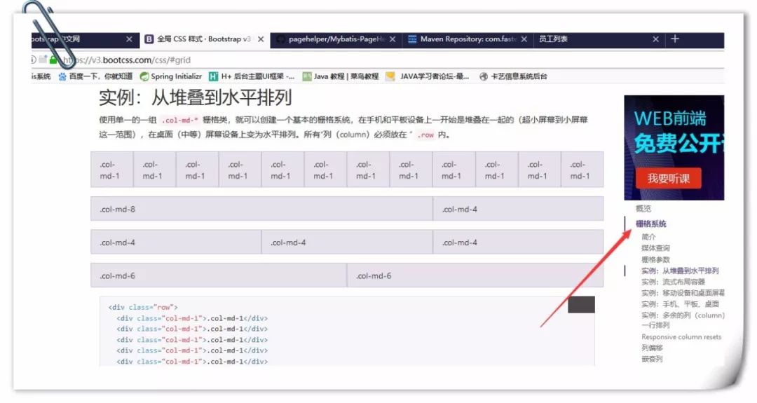 首先使用bootstrap的栅格系统https://v3.bootcss.com/css/#grid,如图