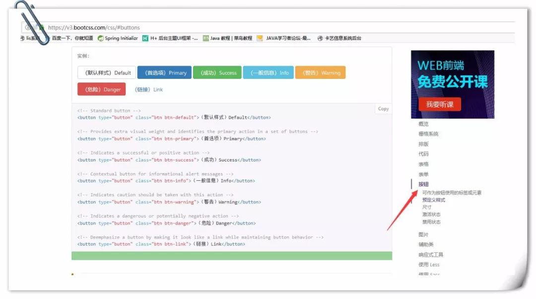 1.在按钮注释的div中添加一个按钮,这个按钮也在bootstrap官方文档中找如图: