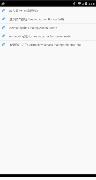 但是Theme.AppCompat 并没有实现谷歌官方应用中用到的每个material组建。其中一个重要的特性就是AppCompat theme没有提供一个显示在EditText上方的浮动标签。