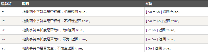 echo "-z $a : 字符串长度为 0"