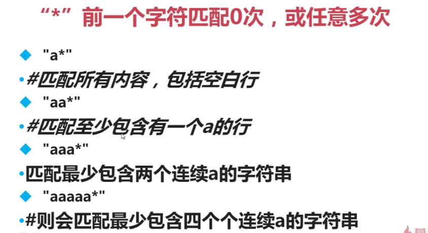 *前一个字符匹配0次或任意多次. 匹配除了换行符外任意一个字符