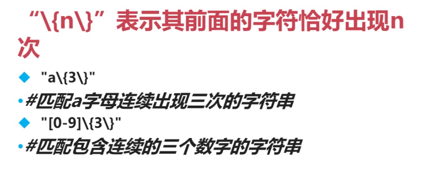 "\{n\}"表示其前面的字符恰好出现n次 元字符 \{n,\}