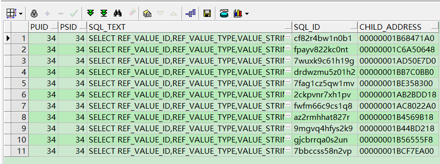 如果这里有多条 SQL_TEXT, SQL_ID 相同的,就说明 SQL 没有重用.