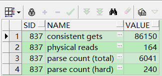 'parse count (hard)'); 查看 SID=837 的 session 的信息。
