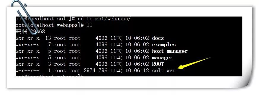 命令:cd /usr/local/solr/tomcat/webapps