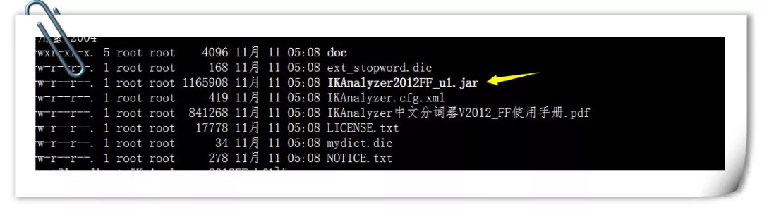 1.将中文分词器先上传到root文件夹下IK Analyzer 2012FF_hf1