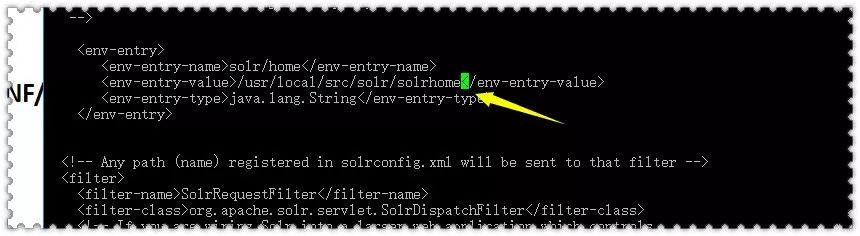 10. 进入到/usr/local/solr/tomcat/webapps/solr/WEB-INF/下修改web.xml文件