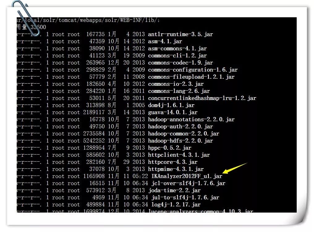查看命令: cd /usr/local/solr/tomcat/webapps/solr/WEB-INF/lib/