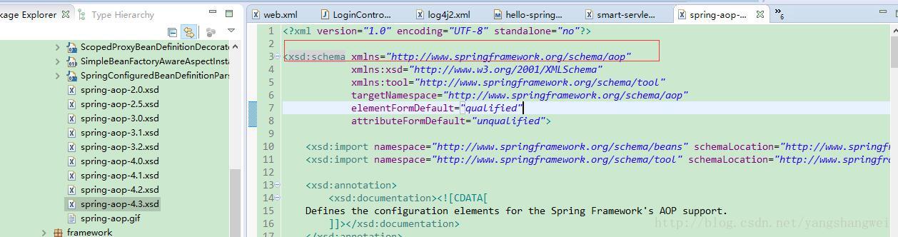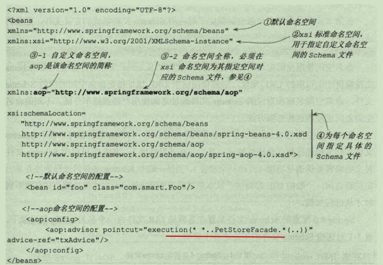- ③ aop命名空间:这个命名空间是Spring配置AOP的命名空间,是用户自定义的命名空间。