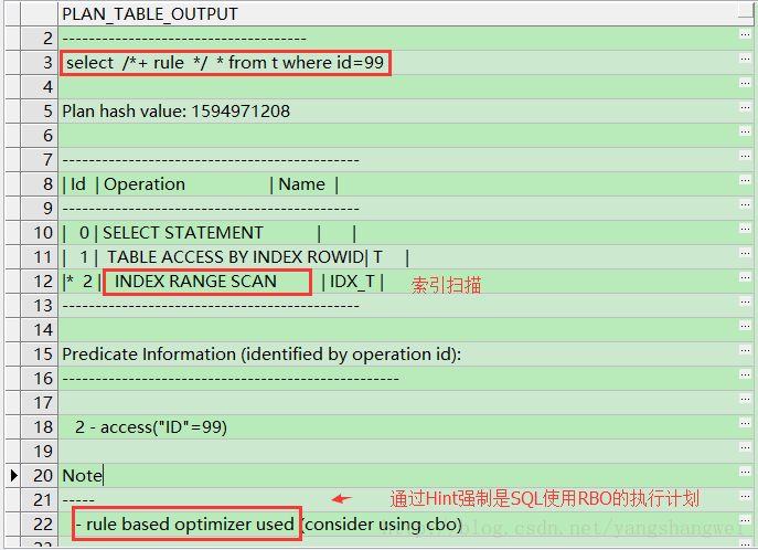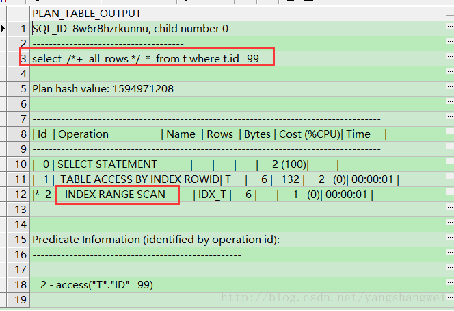 SQL> select * from t where t.id=99; 在RBO的年代里,执行计划是这样的