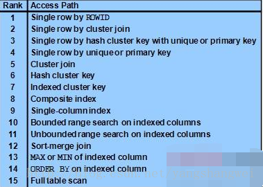 比如优化器决定Oracle是以什么样的方式方式访问数据,是全表扫描(Full Table Scan) 、索引范围扫描(Index Range Scan)还是全索引快速扫描(INDEX Fast Full Scan, INDEX_FFS).