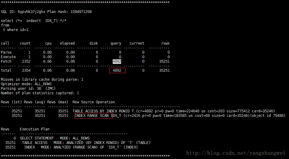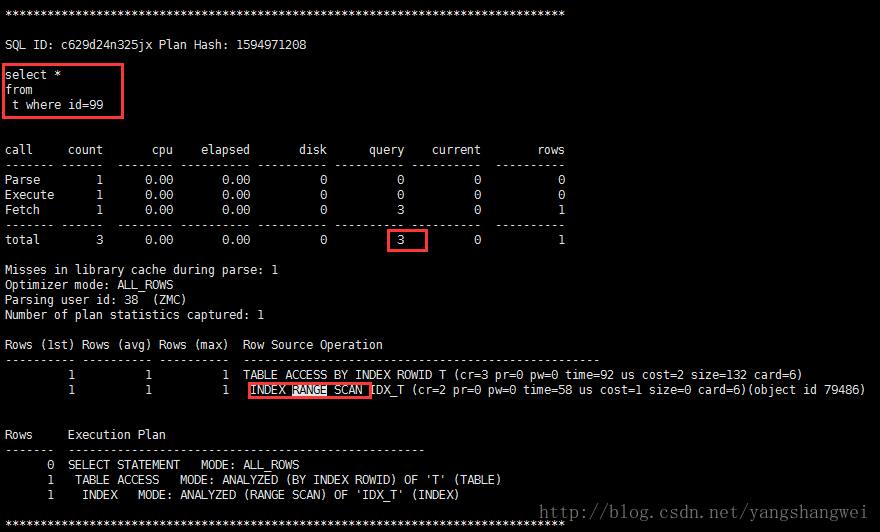 98 INDEX MODE: ANALYZED (RANGE SCAN) OF 'IDX_T' (INDEX)