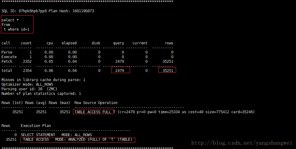 SQL> select * from table(DBMS_XPLAN.display_cursor('axszbzuk341sw',0)); select * from t where t.id=1;