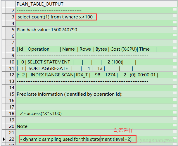上面的信息就是ORACLE做动态采样的SQL语句。