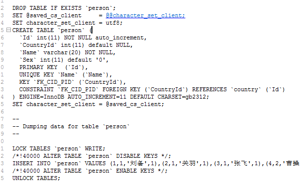 mysqldump命令的工作原理很简单。它先查出需要备份的表的结构,再在文本文件中生成一个CREATE语句。然后,将表中的所有记录转换成一条INSERT语句。然后通过这些语句,就能够创建表并插入数据。