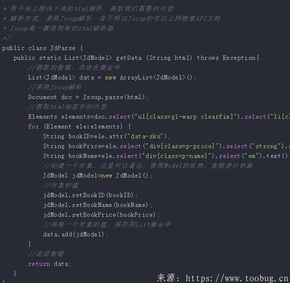 parse主要是通过Jsoup来解析html文件。并将解析后的数据,封装在List集合中,将数据通过层层返回到main方法中。
