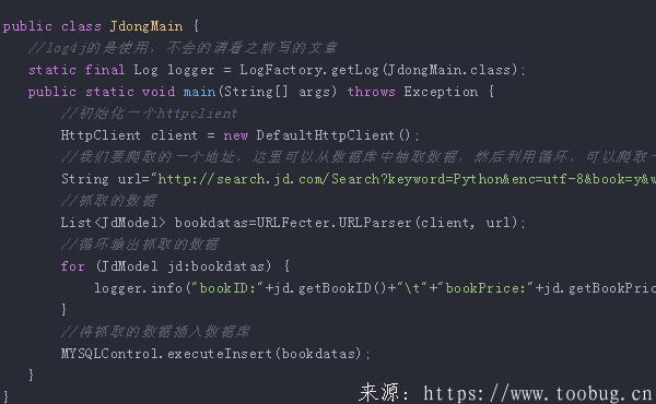 通过上面的框架,我们可以看出写一个网络爬虫,其实很简单(当然有很复杂的网络爬虫哦)。下面,我将带大家写一个基于java爬虫京东图书信息的网络爬虫,只是做讲解使用,供大家学习和参考。