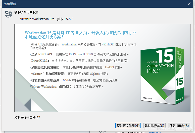 所以点击检查更新,跳到了 VMware-player的下载页面,那就安装VMware-player-15.5.0-14665864.exe吧