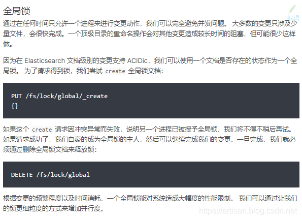 虽然没成功,但是缺点还是显而易见的: 直接锁整个index,这个时候对index中所有的doc的操作,都会被block住,导致整个系统的并发能力很低。