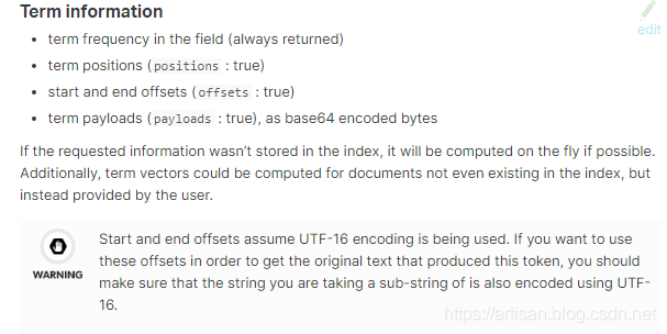 主要包含以下几个信息: term frequency in the field, term positions, start and end offsets, term payloads