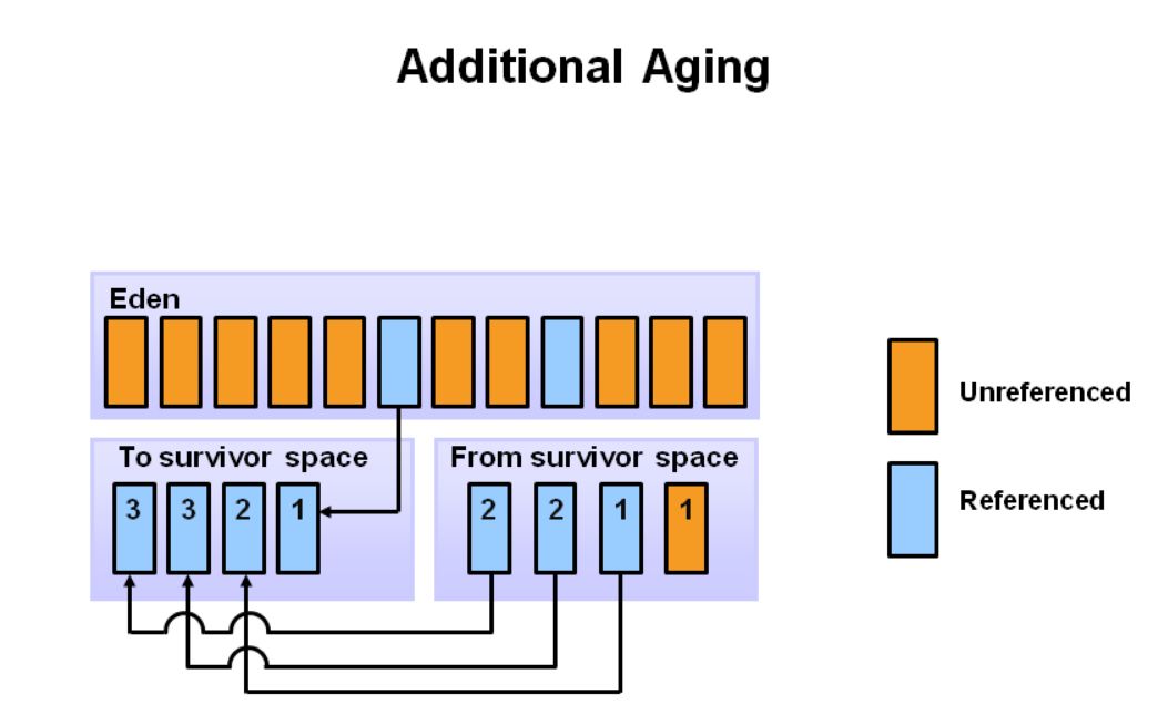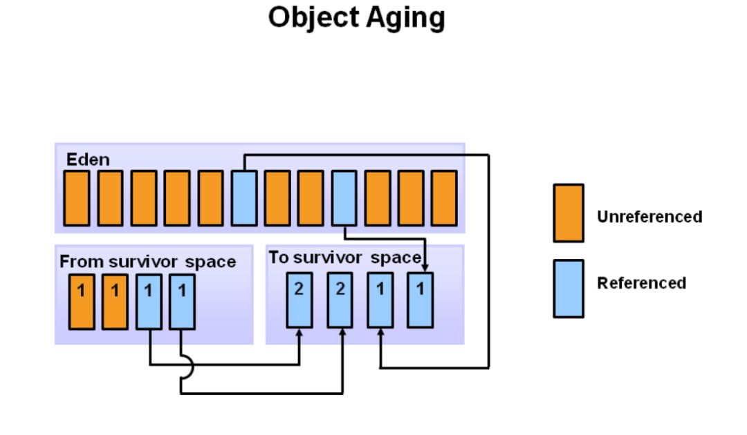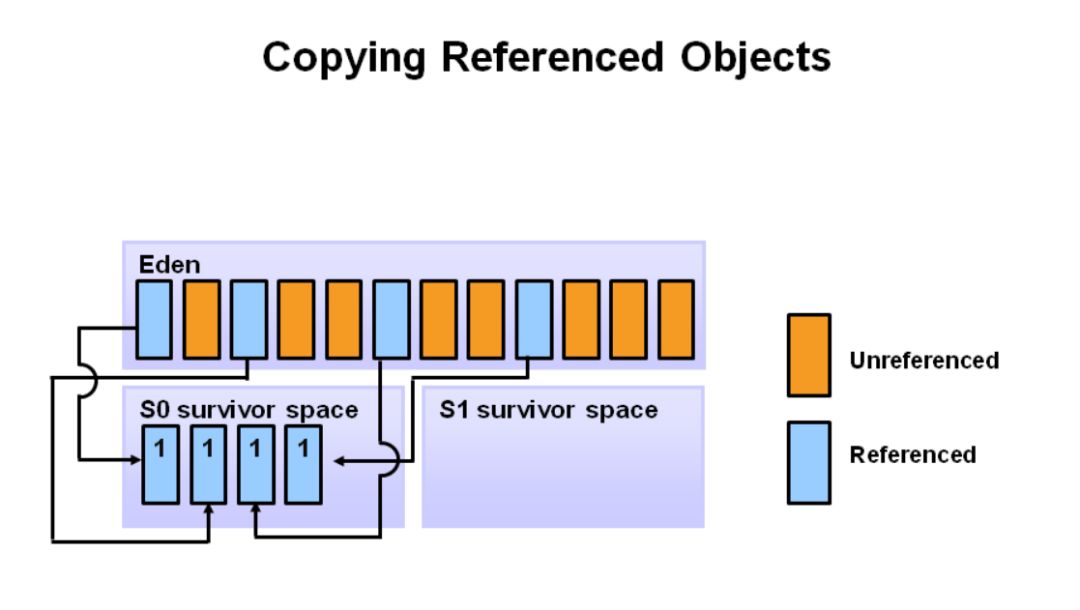 引用的对象移动到第一个 survivor 空间,清除 eden 空间时,将删除未引用的对象。