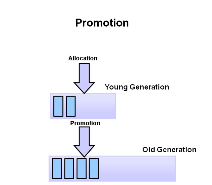 随着较小的GC持续发生,物体将继续被推广到老一代空间。