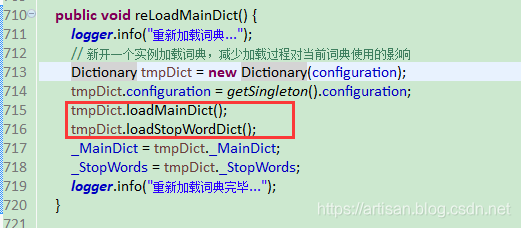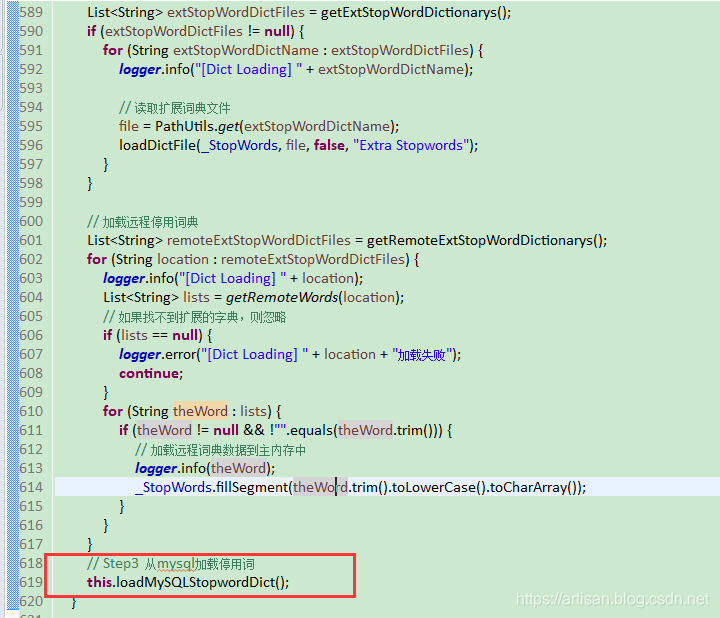 两件事儿,加载主词库 和 停用词词库 ,那我们就把自定义的mysql部分分别放到这两个方法里就OK了。