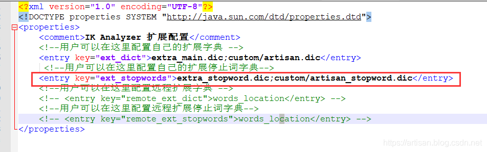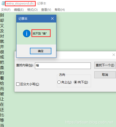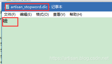 我们在新建的目录 custom , 在该目录下新建一个文件: artisan_stopword.dic , 添加停用词