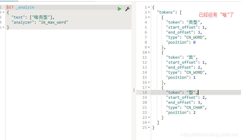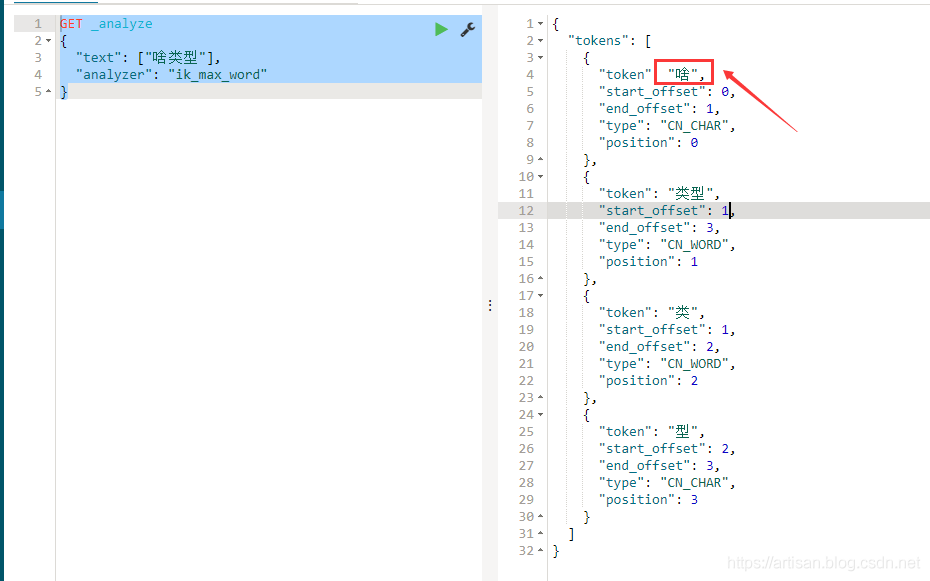 这个时候,我们用ik的ik_max_word分词器来查下分词