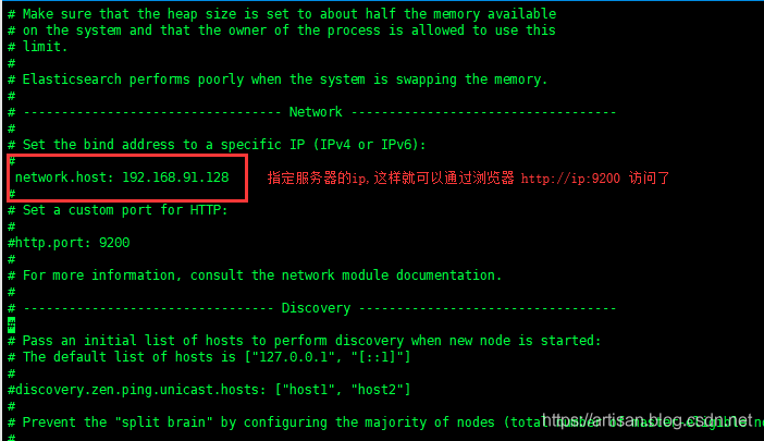 http://192.168.91.128:9200/ 访问不了时,elasticsearch.yml中network.host指定为服务器本身的ip 或者 0.0.0.0 即可。