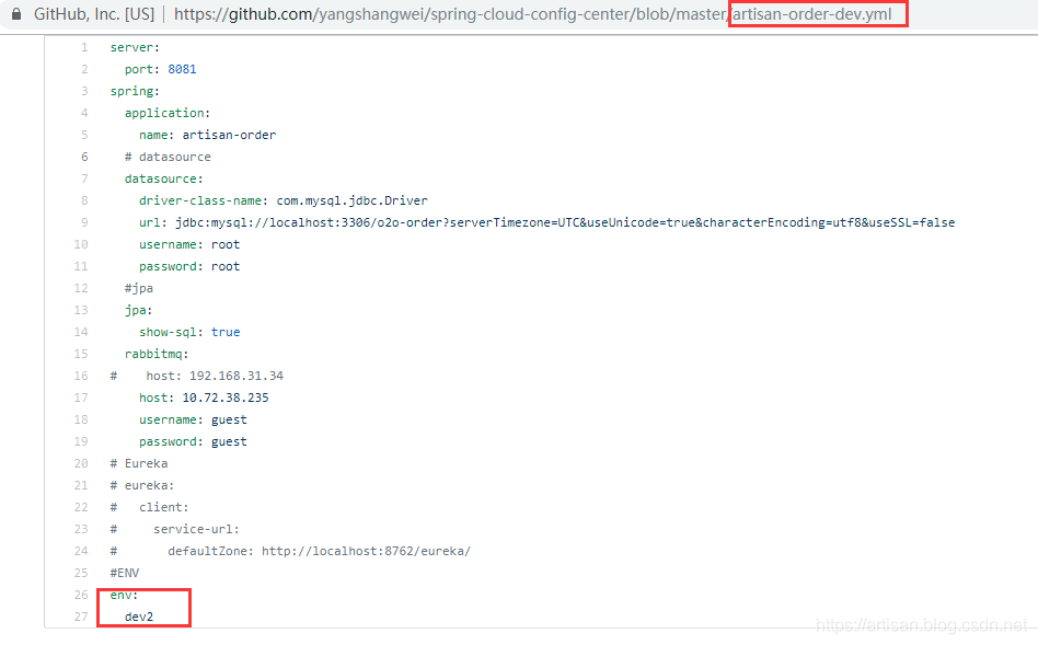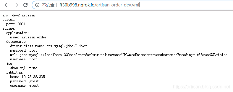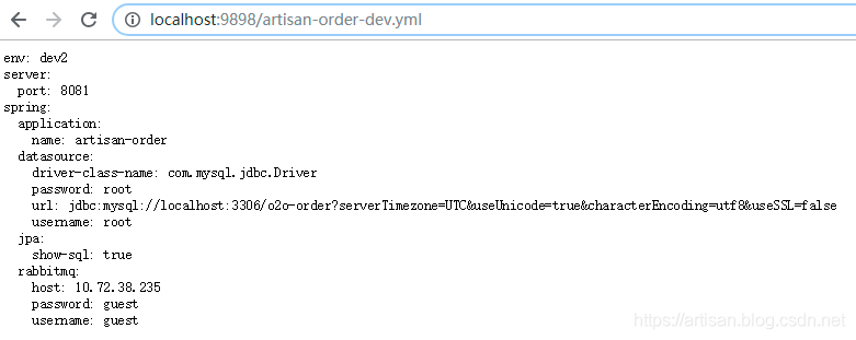 通过config server 访问artisan order 使用的配置文件dev分支的信息