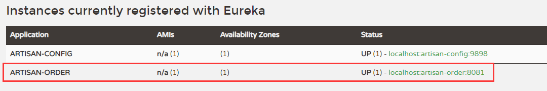 2019-04-09 21:40:57.739 INFO 15384 --- [M-hMsHP_7Ig1A-1] o.s.c.n.e.s.EurekaServiceRegistry : Registering application artisan-order with eureka with status UP