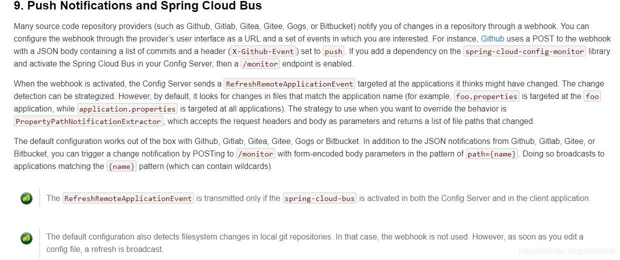2019-04-09 21:40:57.740 INFO 15384 --- [M-hMsHP_7Ig1A-1] o.s.cloud.bus.event.RefreshListener : Received remote refresh request. Keys refreshed [config.client.version, env]