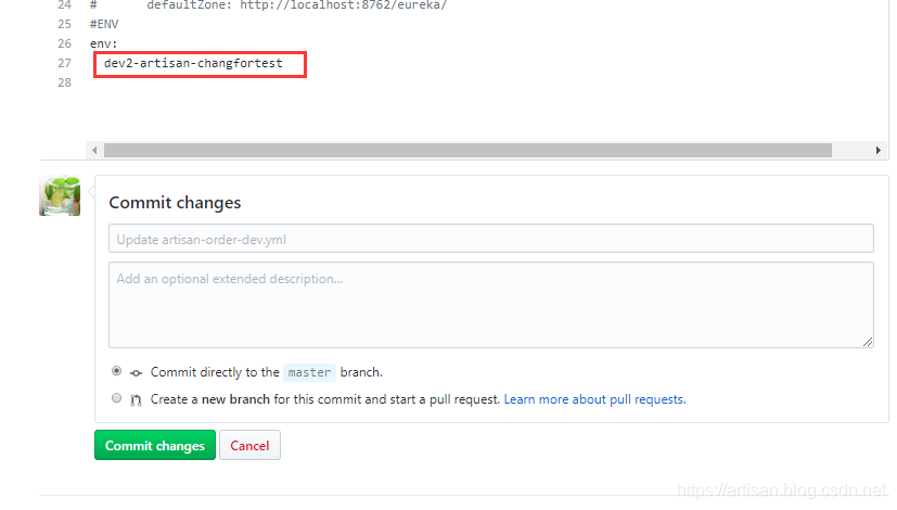 现在将env的值修改为 dev2-artisan