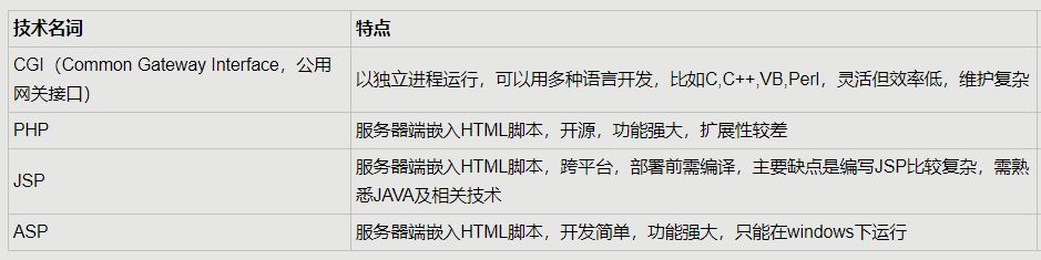 Web服务器的出现的标志着WWW时代的带来,世界变得更加平面化。当初尝到甜头的开创者们开始不满足与在互联网上获取静态资源,于是出现了CGI脚本来动态获取资源。再后来网络发展方向也是朝着增强Web服务器动态获取资源的能力前进。以下是代表性的动态技术: