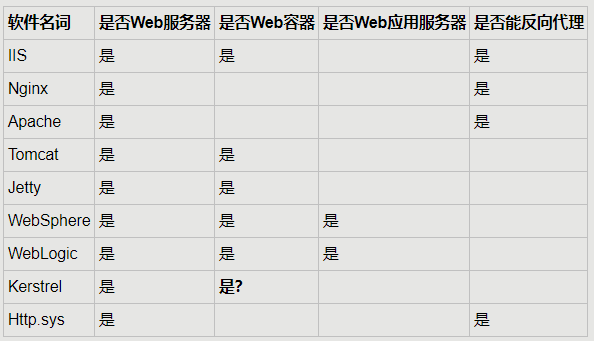 反向代理服务器在企业级应用中表现突出,具有解决集中式安全,负载均衡等等优点。如今这四个概念的边界越来模糊,看看这个表就知道了: